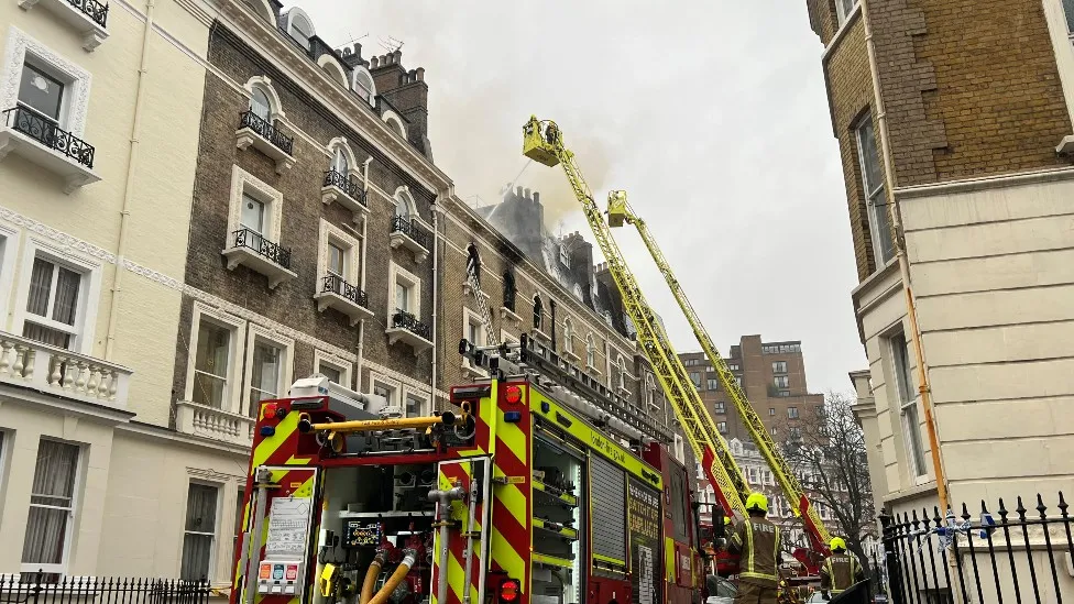 About 160 people were evacuated from Emperor's Gate, in South Kensington, after the fire spread from a ground-floor flat just after midnight. London Fire Brigade (LFB) said the blaze, which had spread to the roof of the building, was now under control.