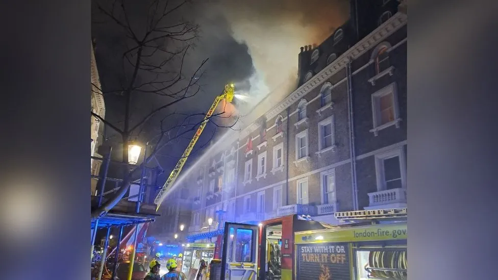 Fifteen fire engines and about 100 firefighters arrived at the scene to find half of the ground floor of the building was alight, LFB said. Two people were rescued from a second-floor flat, one person was helped from a first-floor flat and another two were rescued from a flat on the fourth floor.
