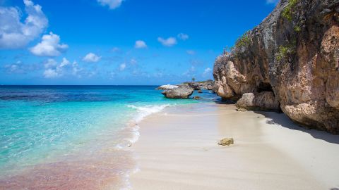 It’s a three-hour direct flight from Miami into a teeny tiny airport, and then a 10-minute drive to the island’s capital, Kralendijk, where most of the resorts are concentrated. At Delfins Beach Resort, the rooms are outfitted with mini-kitchens, as the majority of guests have extended stays of a few weeks or longer. There are also rental homes via Airbnb available, and many are less than $100 per night.