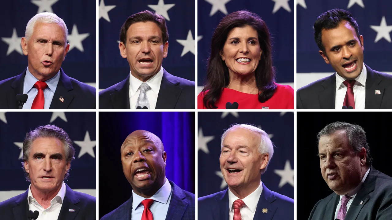 The list includes North Dakota Gov. Doug Burgum, former New Jersey Gov. Chris Christie, Florida Gov. Ron DeSantis, former South Carolina Gov. Nikki Haley, former Arkansas Gov. Asa Hutchinson, former Vice President Mike Pence, entrepreneur Vivek Ramaswamy and South Carolina Sen. Tim Scott.