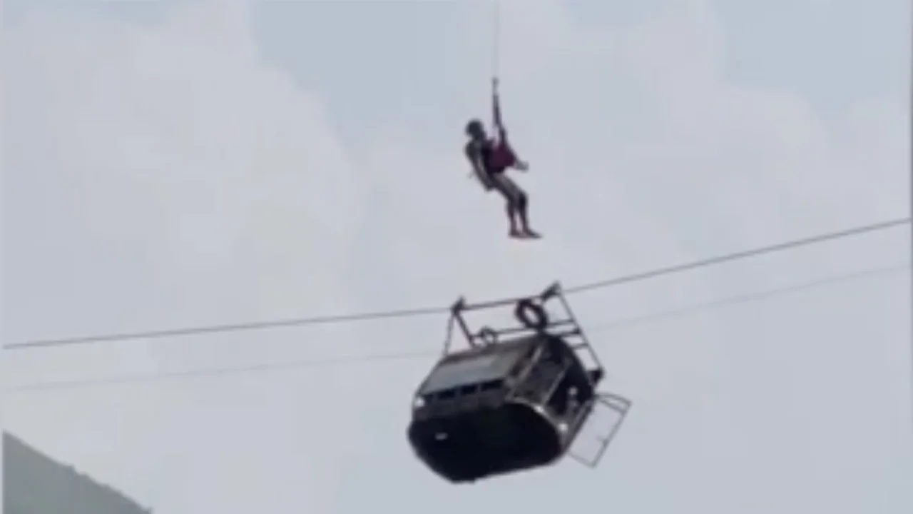 Footage released by the rescue services captured the dramatic moment when one child appeared to jump from the cable car while holding onto the end of a rope dangling from a helicopter before being flown to safety. Another video provided by the rescue services showed locals and emergency workers using ropes to reel in another person attached to a platform by a harness.