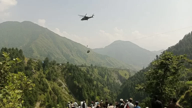 The rescue included helicopters and the use of zip lines, officials say. But as night fell, Pakistani authorities were forced to pause helicopter rescues of the remaining children and adults.