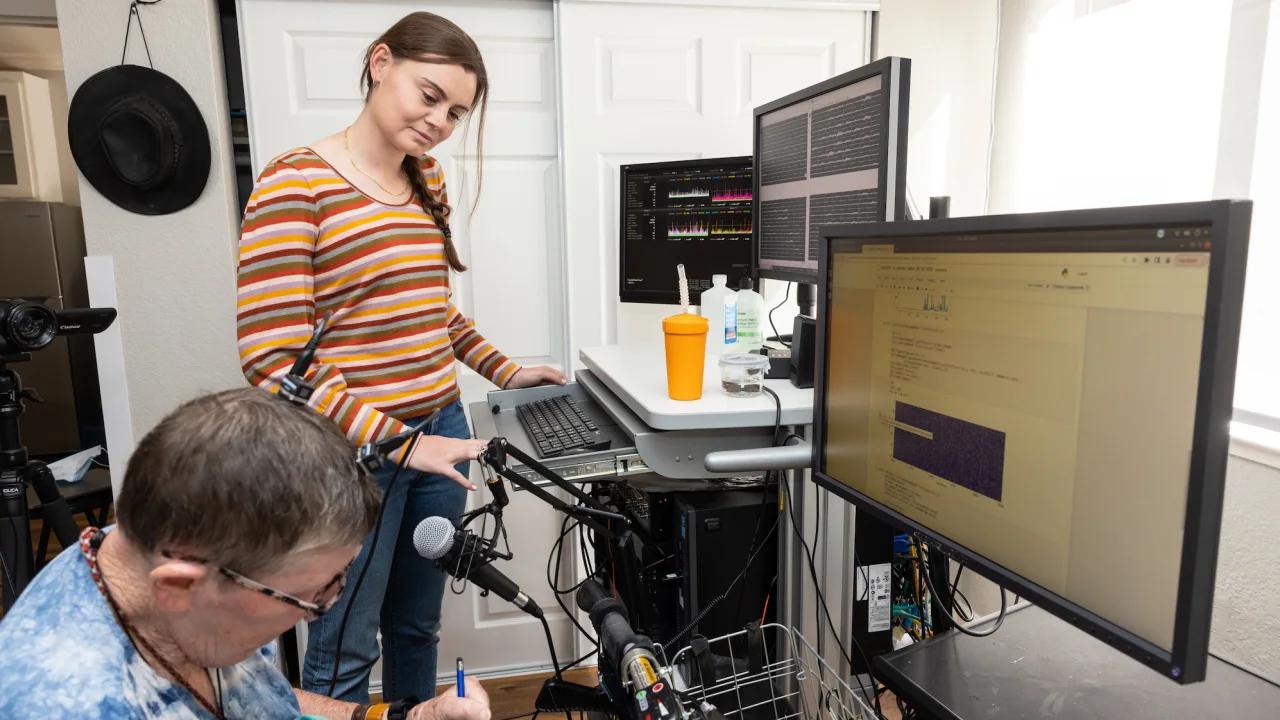 The arrays were attached to wires that came out of the skull and were connected to a computer. Software decoded the neural activity, converting the activity into words that were displayed on the computer screen in real time. When Bennett finished speaking, she pressed a button to finalize the decoding.