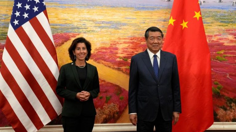 Earlier Tuesday, Raimondo had met with Culture and Tourism Minister Hu Heping. The two agreed to advance “people to people ties” through increased tourism as well as educational and student exchanges, according to Raimondo. She also met with Chinese Premier Li Qiang and was expected to head to Shanghai by train for meetings with business leaders on Wednesday.
