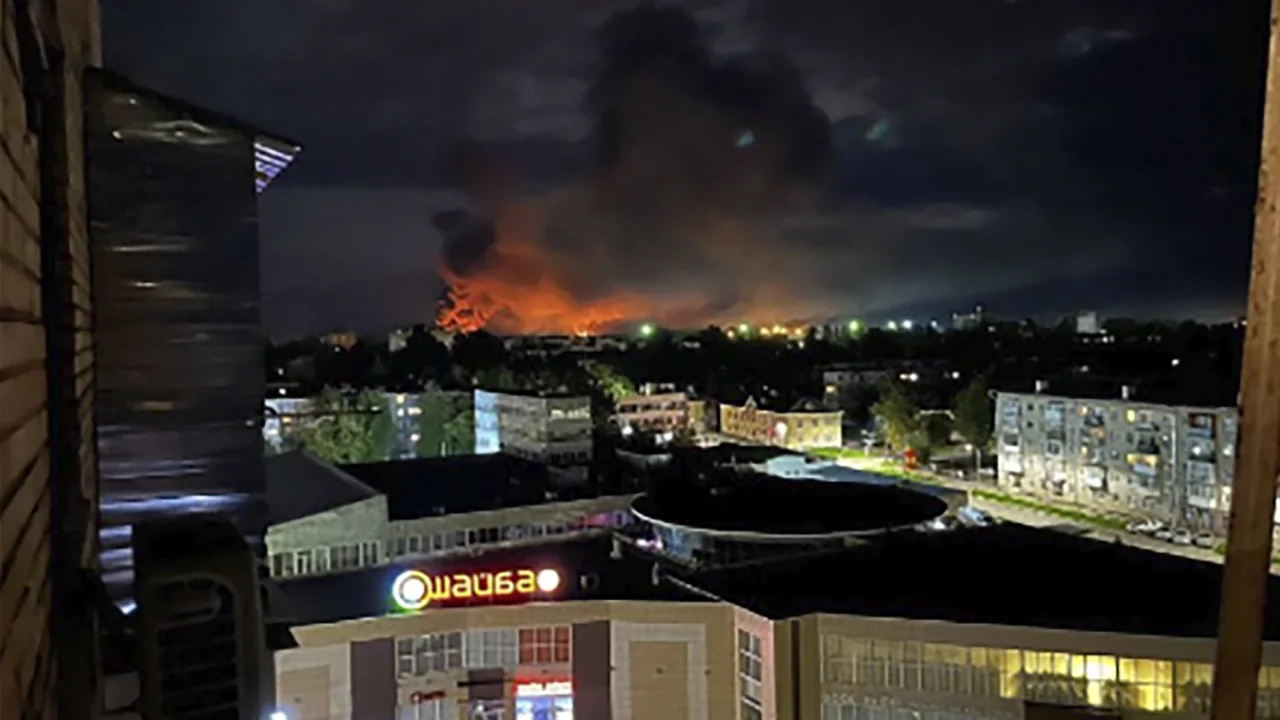 Mikhail Vedernikov posted a video showing what appears to be a large plume of smoke coming from behind buildings in what looks like a residential area. Russian state news agency TASS reported that “as a result of drone attacks four Il-76 aircraft were damaged,” in Pskov. A fire broke out and two aircraft were engulfed in flames, TASS said, citing emergency services.