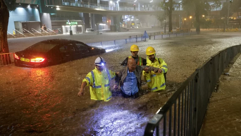 Friday’s deluge again caused widespread transport and business disruptions across the financial hub, with the stock market canceling morning trading, and all schools closed for the day. On Friday, authorities appealed to businesses to allow non-essential employees to stay at home or seek safe shelter, citing unsafe travel conditions.