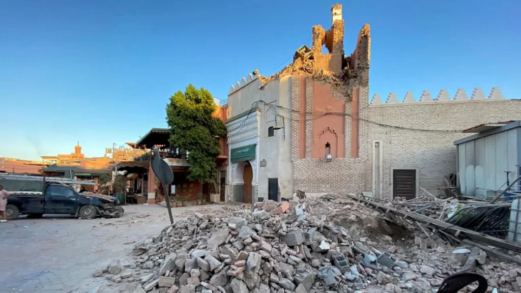 The mosque, located in the corner of the famous Jemaa el-Fna square, had a beautiful tower which, once adorned with white triangle decoration, has almost entirely collapsed in the powerful earthquake that struck the area on Friday night.