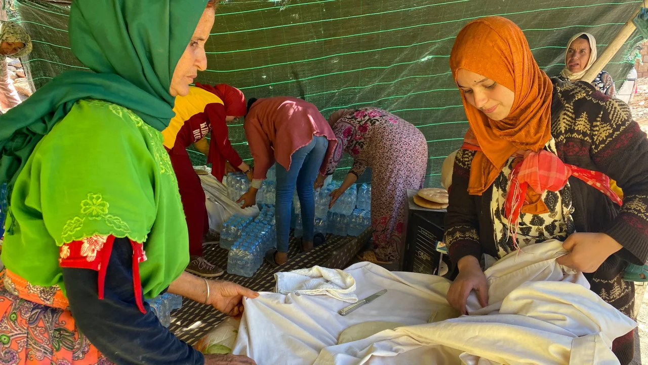 The tents provided little relief from the hot afternoon sun on Sunday. But the heat did little to stop Leila Idabdelah. With her baby strapped to her back, Idabdelah was making khobz – a traditional Moroccan flatbread – to feed those affected. Not being able to rely on official help, the locals have self-organized and are sharing resources. Idabdelah oversaw the bread oven and had made several dozen loafs since the morning.