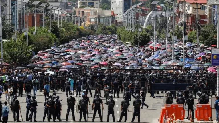 On Thursday, scores of protesters marched towards the parliament building in the capital, Kathmandu. Anti-riot police armed with sticks pushed pack as the protesters tried to push past a steel barricade.