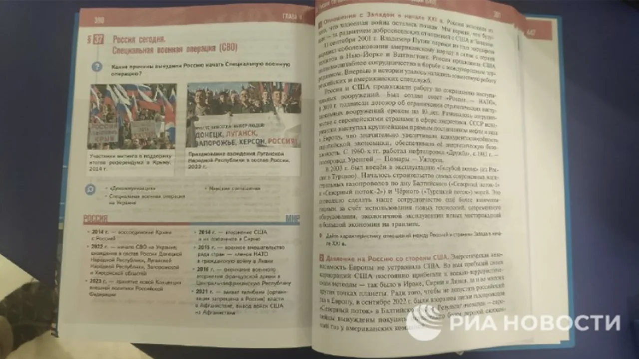 A new chapter falsely claims that Ukraine “openly declared its desire to acquire nuclear weapons,” and “unprecedented sanctions have been introduced against Russia, since the West is trying in every way to bring down the Russian economy.”