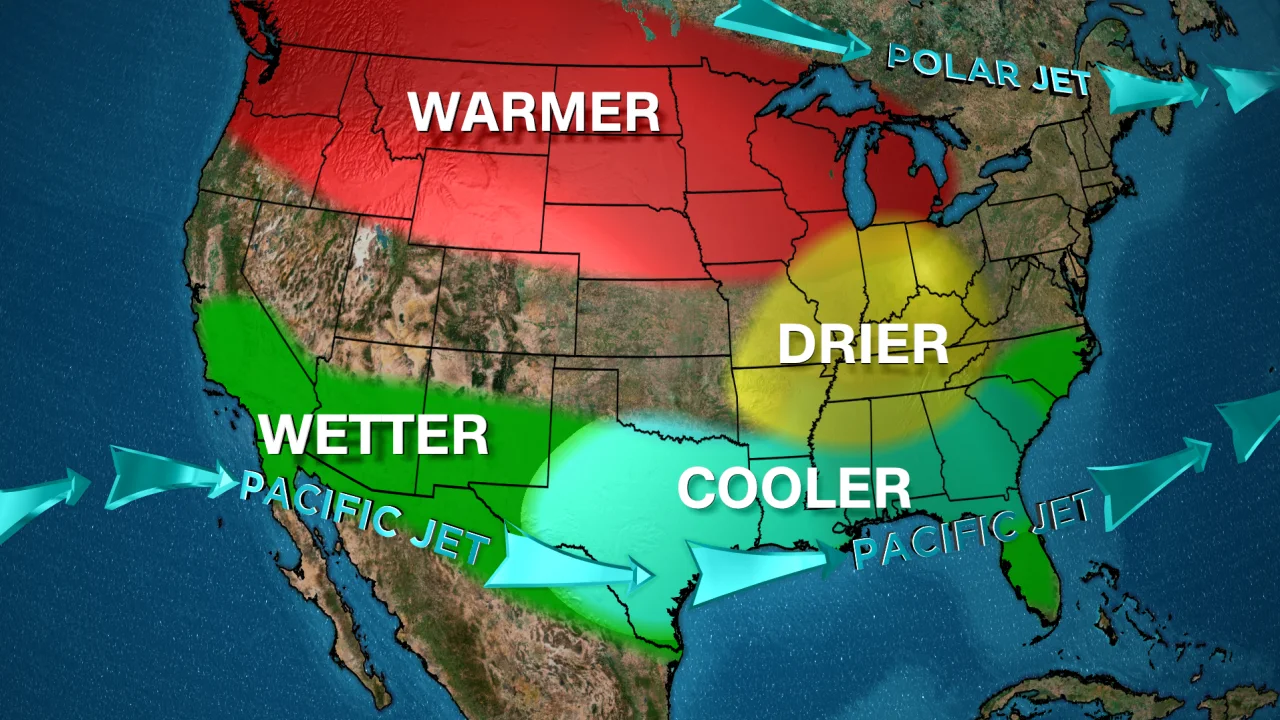 One of the major reasons is the position of the jet stream, which often shifts south during an El Niño winter. This shift typically brings wetter and cooler weather to the South while the North becomes drier and warmer, according to NOAA.