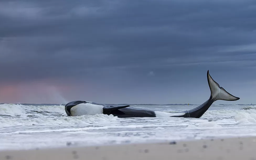 Lennart Verheuvel won the Oceans: The Bigger Picture category. The distressing picture shows a beached orca at Cadzan, on the Dutch-Belgian border. A necropsy revealed the animal was not only severely malnourished but also extremely sick.