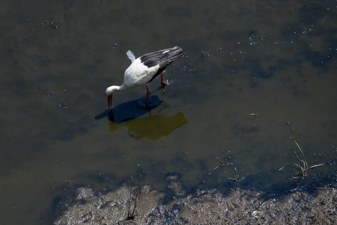 Storks are one of a handful of birds known to excrete liquid onto their legs when they overheat. The liquid – which contains both feces and urine – evaporates, lowering body temperature in a process akin to sweating in humans.