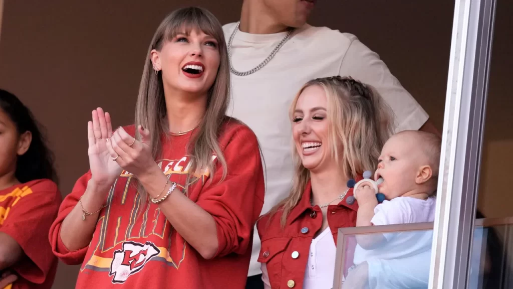 She was seen embracing Brittany Mahomes, the wife of Chiefs quarterback Patrick Mahomes, after Kelce made a big play on the field. The singer was also seen hanging out with former Cleveland Browns quarterback Bernie Kosar before the game, according to a photo he posted on social media.