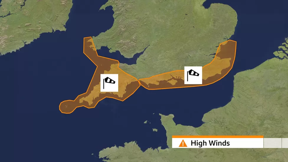 Gusts of 70-80mph (112-130km/h) are expected around coastal areas, perhaps even 85mph (137km/h) in the most exposed locations. The strongest winds will then transfer east along the south coast into south-east England where a second amber warning is valid from 6am to 8pm on Thursday.