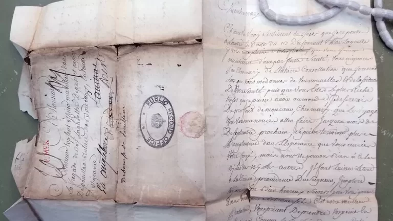 The Galatee was captured by the British on its way from Bordeaux to Quebec in 1758. Upon learning the ship was in British hands, French authorities forwarded the letters to England, where they were handed to the navy and ended up in storage.