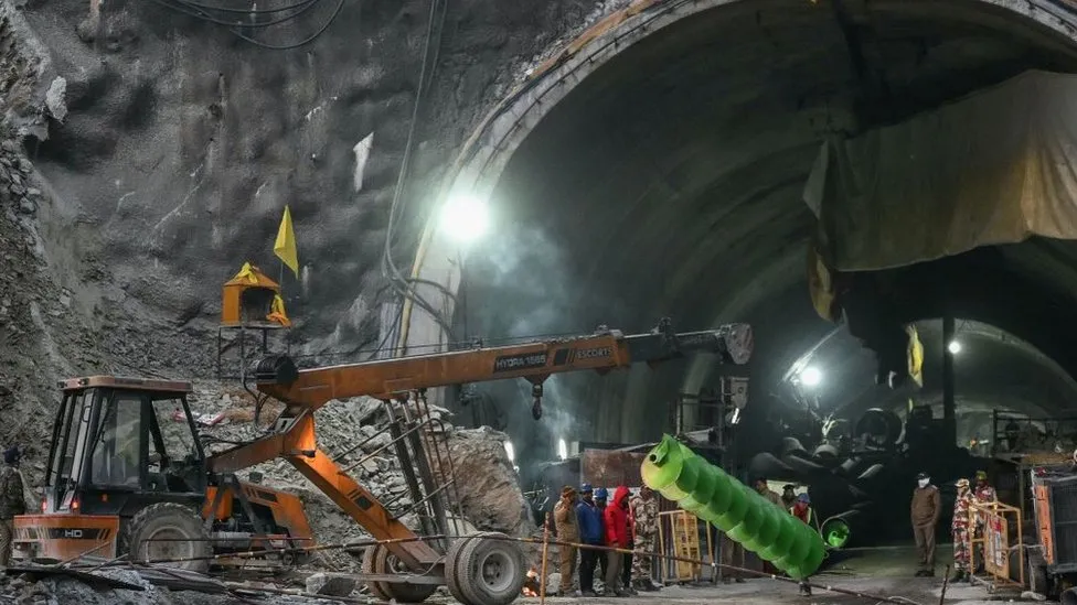 A section of the 4.5km (3 miles) Silkyara tunnel in the Indian Himalayas caved in on 12 November. Contact was established with the trapped men shortly thereafter, and they have been receiving oxygen, food, and water ever since.