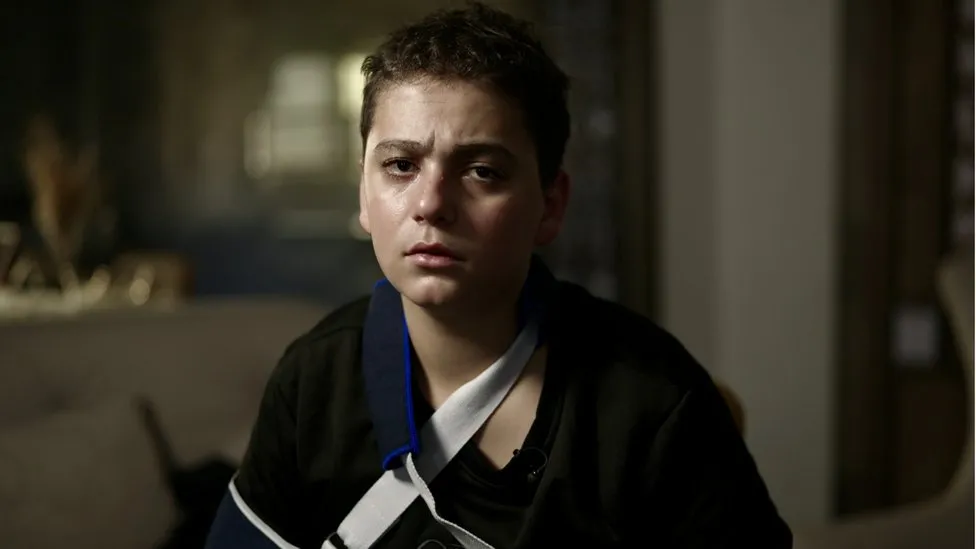 In the footage, the teenager's hands are unbandaged, and appear to be hanging by his sides – including as he climbs onto the bus – but are out of shot for most of the video. Mohammed told us that the first medical treatment he received was on that Red Cross bus.