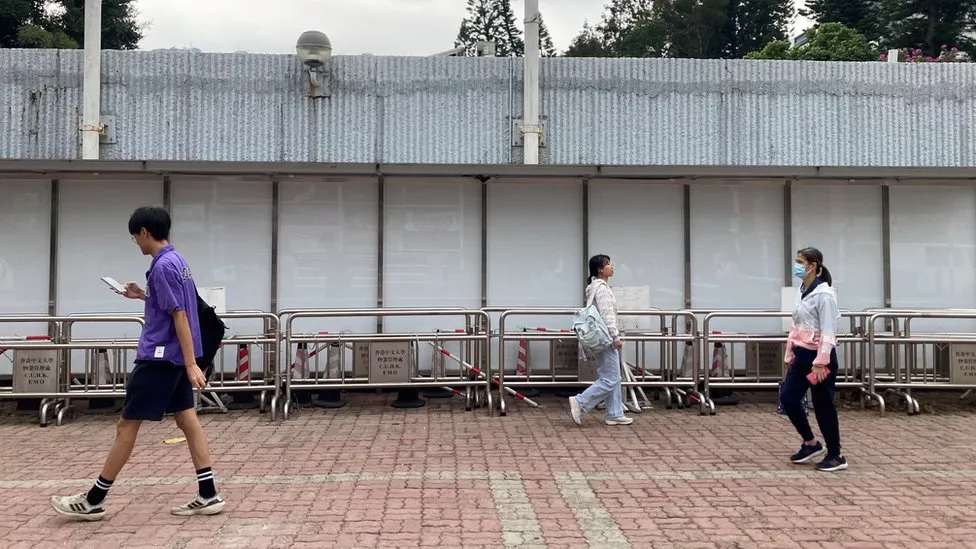 CUHK was a battleground in 2019, with black-clad protesters and riot police trading petrol bombs, bricks, tear gas and rubber bullets. It bears no signs of dissent now. The democracy wall, which was once filled with pro-democracy posters and post-it notes, has been stripped bare and barricaded. The statue of the Goddess of Democracy, which was erected in memory of the thousands who died in Beijing's Tiananmen Square crackdown in 1989, is gone. It was removed in the early hours of Christmas Eve in 2021.