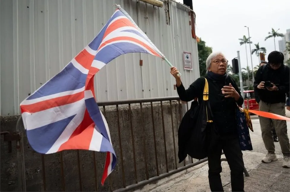 Waving the territory's old Union Jack flag, the activist known as Grandma Wong shouted: “Support Jimmy Lai! Stand up for the truth!”
