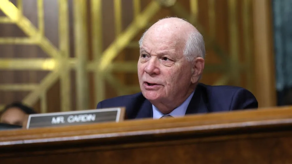 The BBC has not independently verified the video or confirmed the identity of anyone involved. On Monday, Mr Cardin was asked by reporters how an aide would have been able to access the Senate hearing room.
