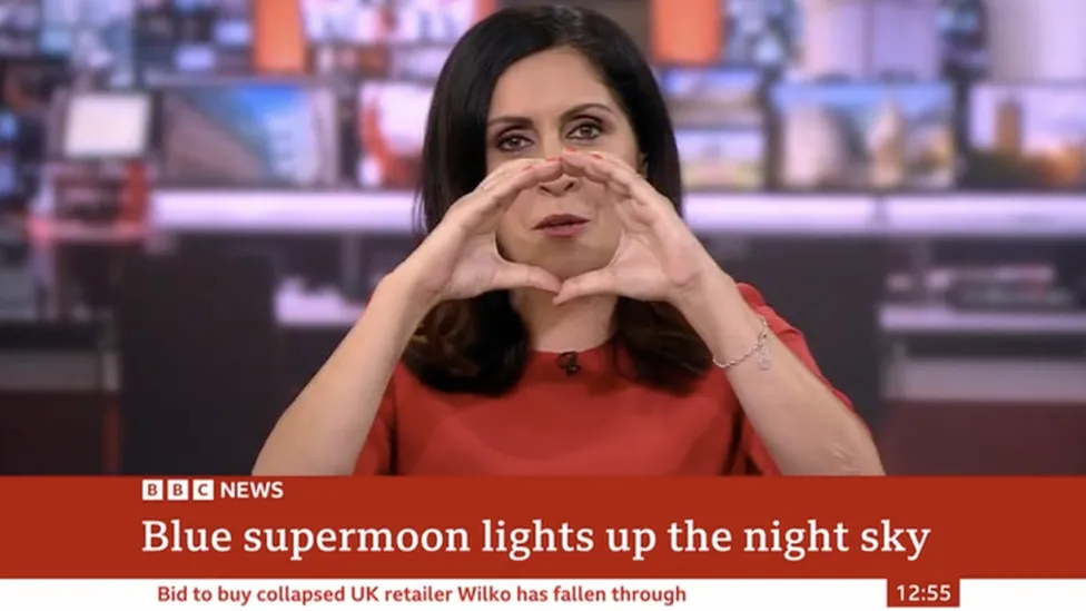 When footage of the blue supermoon failed to appear as expected in August, BBC News presenter Maryam Moshiri attempted to recreate the phenomenon using her hands.