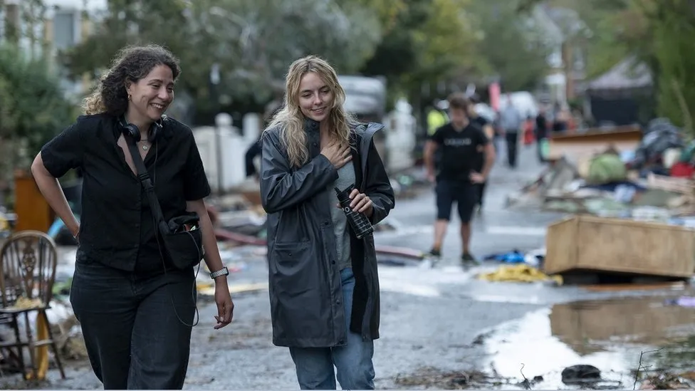 “We're all in the trenches, making an indie film with a baby,” she adds with a smile, explaining that if they couldn't capture a crucial scene due to an infant crying, they would use a dummy baby if time was pressing. Another challenge was depicting widespread flooding and carnage while filming during a drought in September and October 2022, when there was a hosepipe ban.