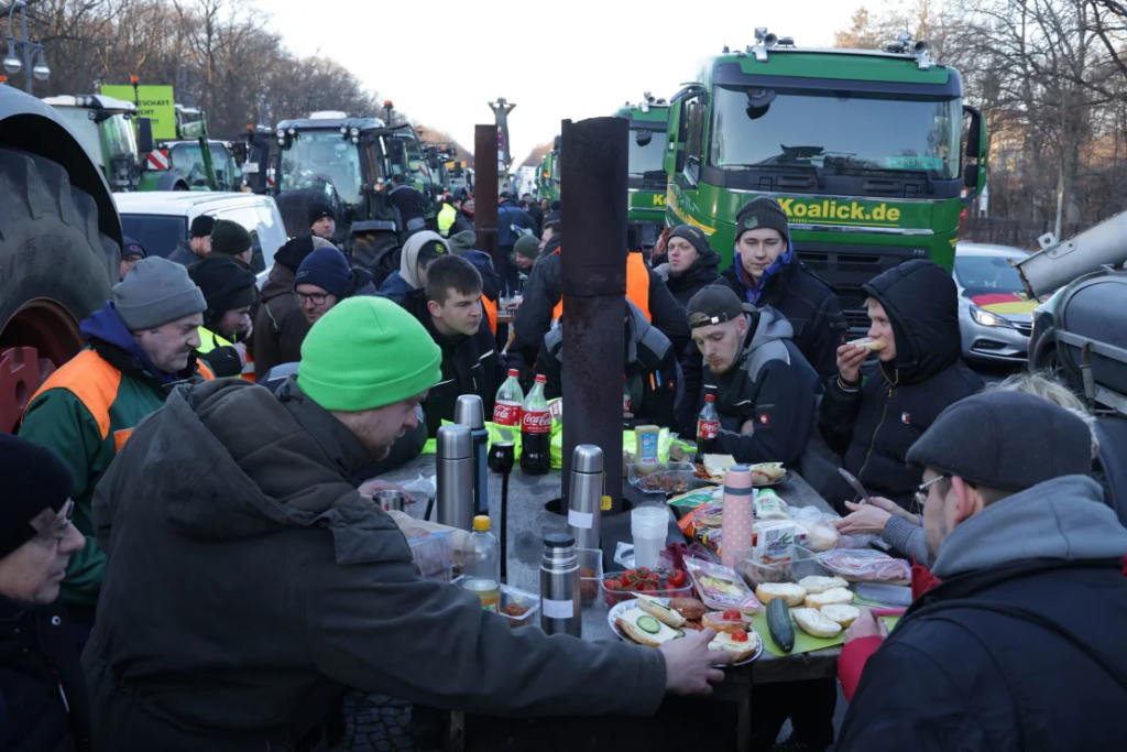 In the shadow of Berlin’s iconic Brandenburg Gate, a convoy of up to 500 tractors lined up every day last week in freezing pre-dawn temperatures. To keep themselves warm, farmers lit fires and drank hot mugs of tea and coffee.