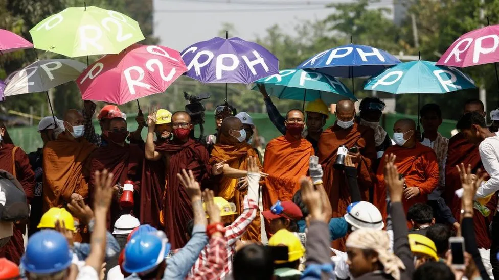 Myanmar's top religious body, the governing Buddhist council or State Sangha, has said little publicly about the coup. Some of its members are believed to have quietly urged restraint on the generals. But one senior monk in the Sangha, Sitagu Sayadaw, has openly supported the military, and even travelled with Min Aung Hlaing on an arms-buying trip to Russia.
