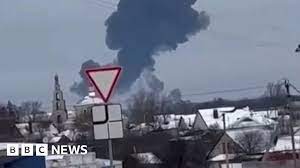 Video shared on social media showed a plane going down followed by an explosion and a fireball near the village of Yablonovo, 70km (44 miles) to the north-east of the city of Belgorod, at about 11:00 local time (08:00 GMT).