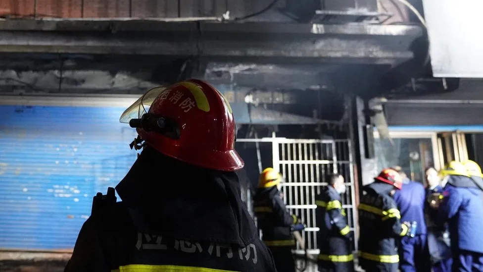 State media said the fire started on Wednesday afternoon local time in the city in Jiangxi province. Footage from state-backed Global Times showed smoke billowing from buildings and people jumping from windows. The video has not been verified by the BBC.