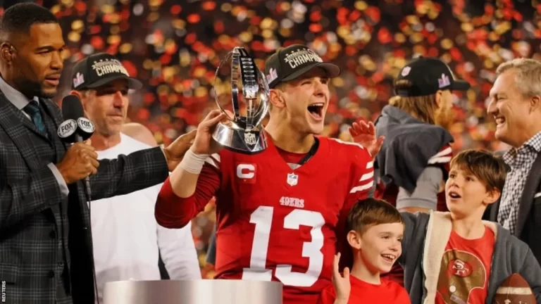 But the 49ers scored 17 points in a dramatic eight-minute span to draw level, before going in front for the first time with just under 10 minutes left. The hosts then held on to win 34-31 and set up a repeat of Super Bowl 54, when Kansas City beat San Francisco 31-20 in Miami.