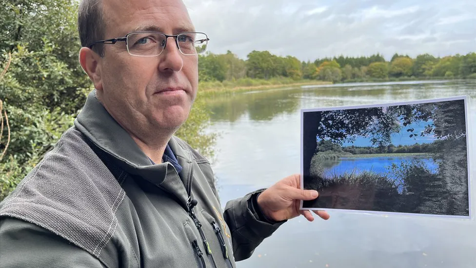 “This is a good news story,” says Rob Ballard, senior ranger at Stover Country Park. He's holding a picture that shows how the lake used to look, with much of it covered with water lilies.