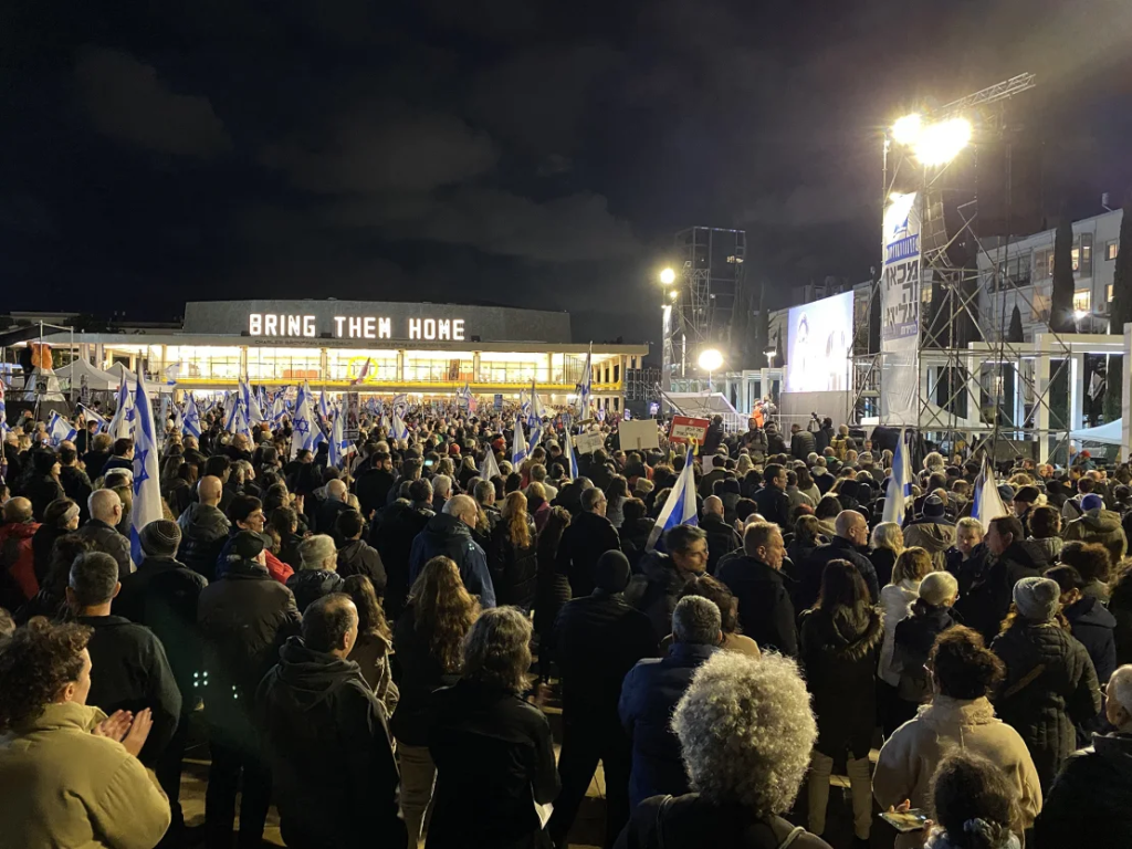 The protesters have urged the government to call new elections as soon as possible – the first time such a demand was made since the terror attacks. These anti-government protests are still strictly separate from the hostage families’ events, which tend to take place just down the road at what has become known as the Hostage Plaza. But more people are coming to both.