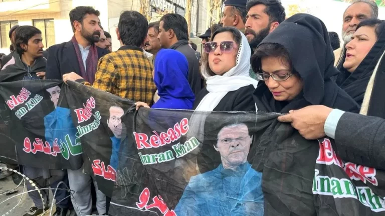 His PTI party was barred from taking part in the election, so most of its candidates stood as independents. Earlier, police used tear gas to disperse a crowd of Mr Khan's supporters in Rawalpindi.