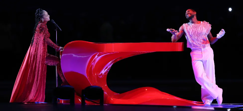 Once Usher was a few songs deep and well into his groove, he took a back seat as his first guest, Alicia Keys, appeared behind a bright red piano wearing a matching sparkly red outfit, launching into one of her own biggest hits If I Ain't Got You.