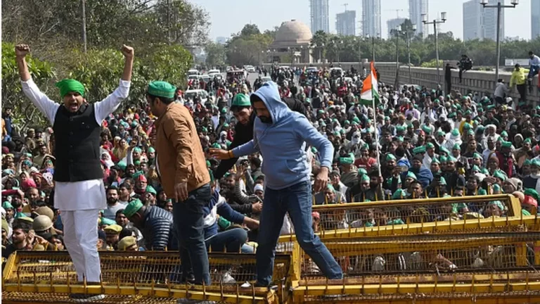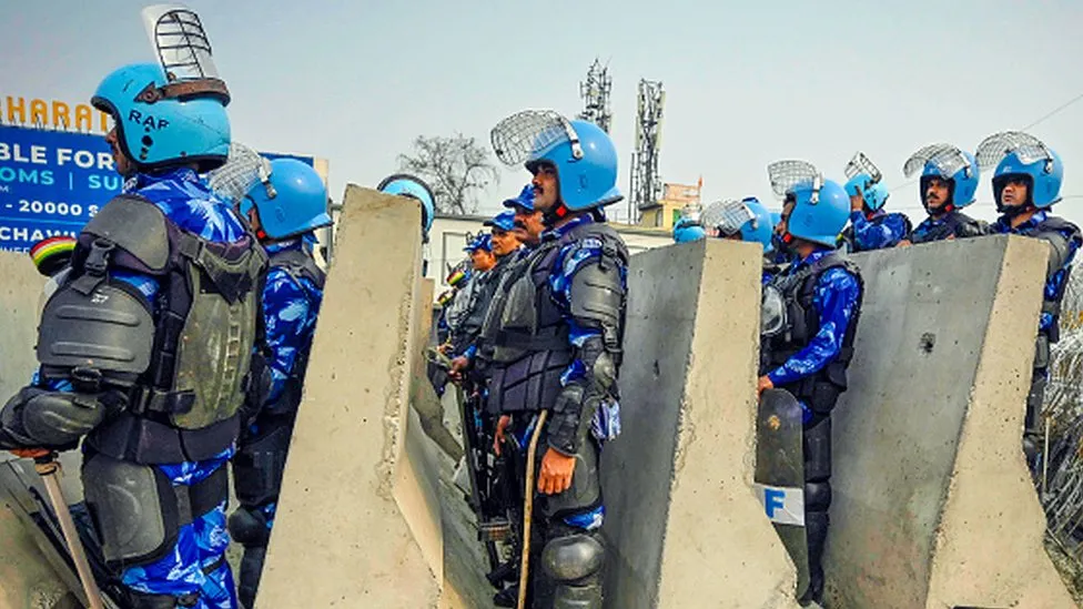 The farmers, most of whom are from Punjab state, are still more than 200km (125 miles) from the capital at the Shambhu border in Haryana state. The capital is ringed by razor wire, cement blocks and fencing on three sides to block their entry.