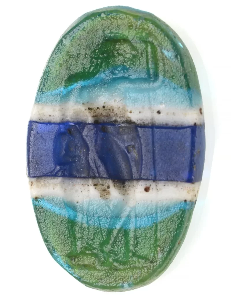 Among the tiny items are an ancient gem of green, white and blue banded glass showing the Roman god of wine and pleasure, Bacchus, dating from the 1st Century BC; and one in yellow depicting the Greek god Zeus in eagle form.