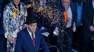 He was interrupted by a heckler accusing him of being a climate change denier, before she was shouted down by his supporters, and had orange confetti thrown over him by rival candidate Rev Mark Coleman, a Just Stop Oil supporter.