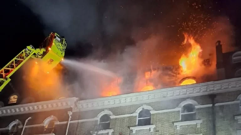 At about 05:30, the fire service said the blaze had been brought under control. Mr King said the roof of the building was “significantly damaged” and the ground floor and an adjoining property had suffered damage too.