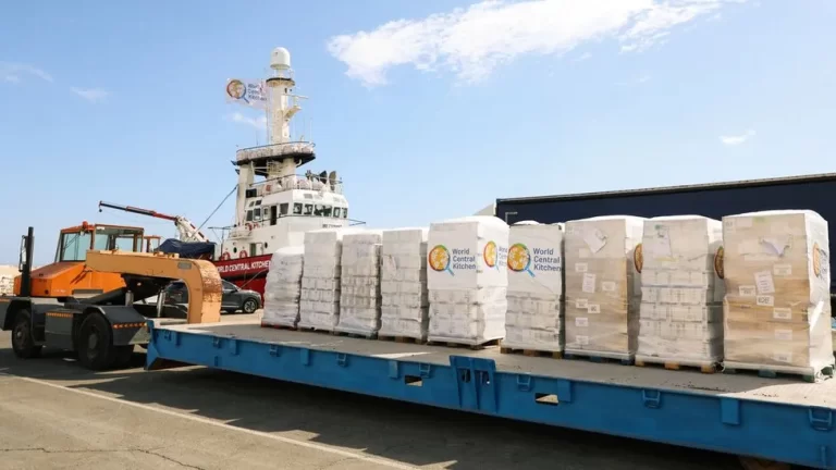 Once it sets sail from Cyprus – the closest EU country to Gaza – the ship will tow a barge loaded with 200 tonnes of food, including rice, flour and cans of meat and fish, sourced by US charity World Central Kitchen (WCK).