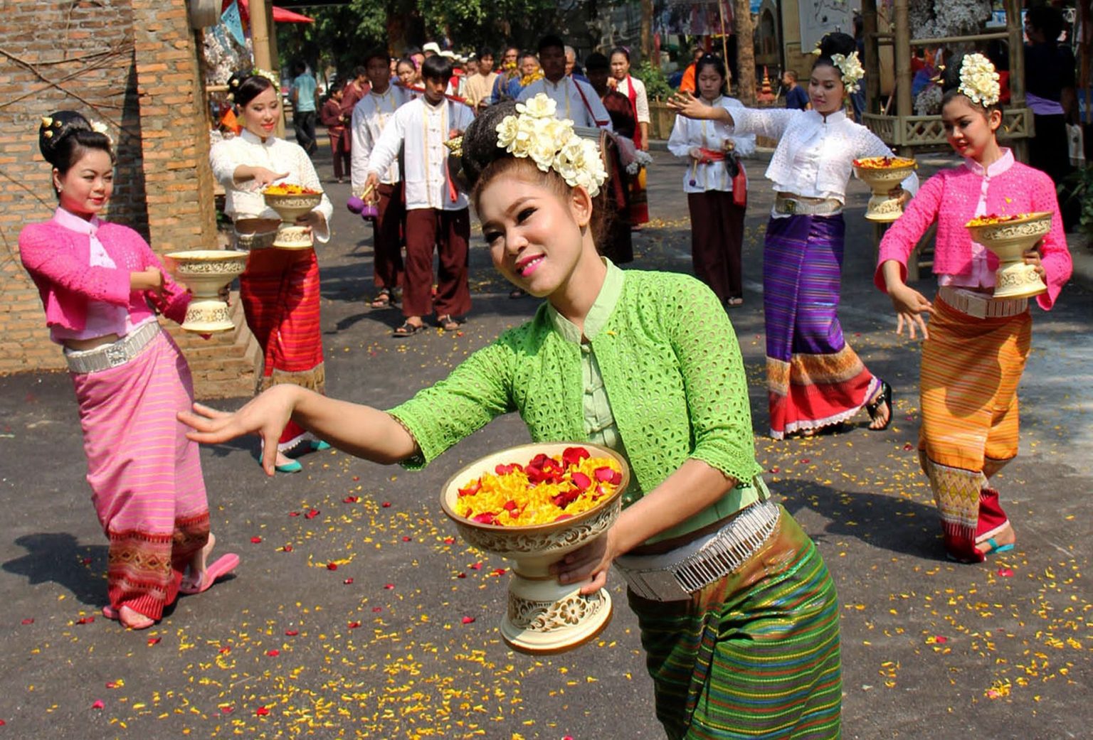 “The second tradition (called Rot Nam Dam Hua) is to pour water with perfume and flowers on the hands of the family’s older members, then the elderly will bless their lineage.” This traditionally happens on April 14. Nowadays, visitors will see Buddha statues placed in businesses too, even in places like shopping malls, accompanied by small silver-hued cups floating in pools of scented water.