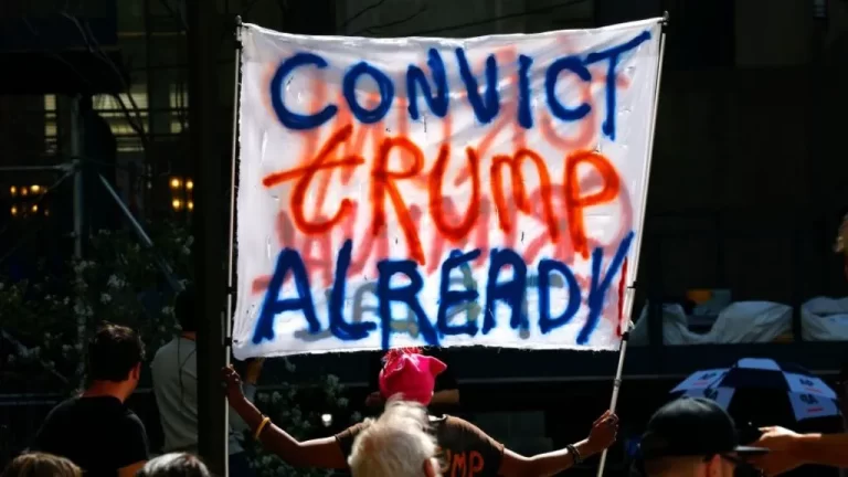 There were others decidedly less enthusiastic about the former president. One held a banner that stated: “Convict Trump already.”