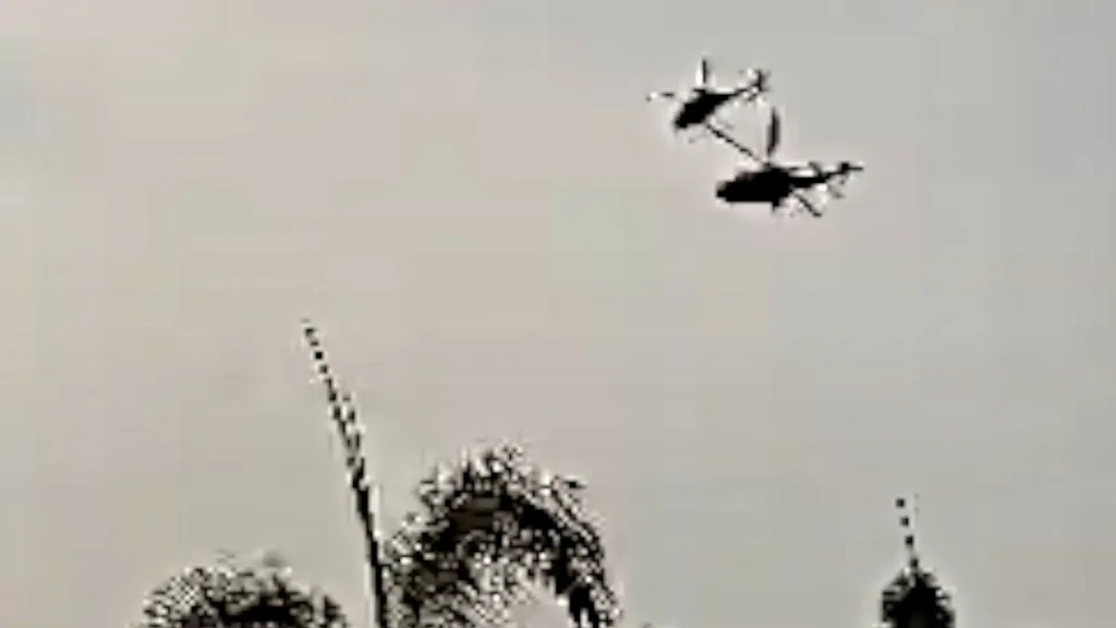 One of the choppers clipped the rotor of the other before the two crashed into the ground, footage published on local media show. The incident took place in the Malaysian town of Lumut, which is home to a navy base.