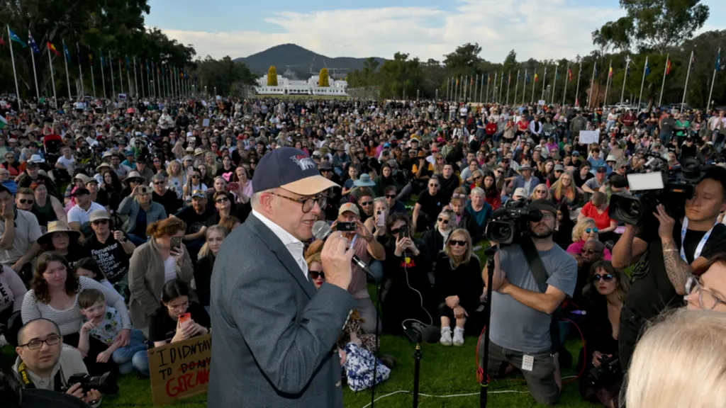 “We don't need one month or two months – we need to address this in a serious way, week by week, month by month, year by year,” he said. As some in the crowd criticised him, Mr Albanese suggested that he had been told ahead of time that he would not be allowed to speak at the rally – prompting a tense exchange with organiser Sarah Williams.