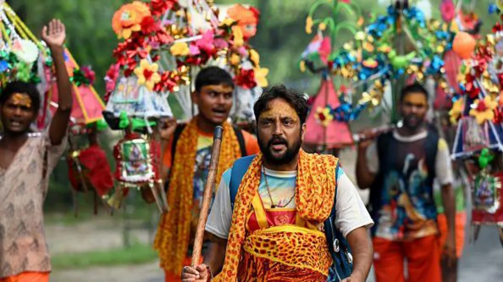 The annual pilgrimage takes place during the Hindu holy month of Sawan. Devotees of the Hindu god Shiva travel on foot, sometimes for days or weeks, to religious sites along the holy Ganges river to collect water and offer it at Shiva temples.
